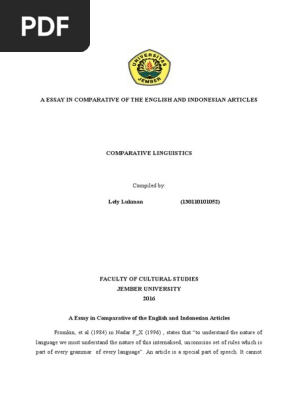 A Essay In Comparative Of The English And Indonesian Articles Noun Indonesian Language