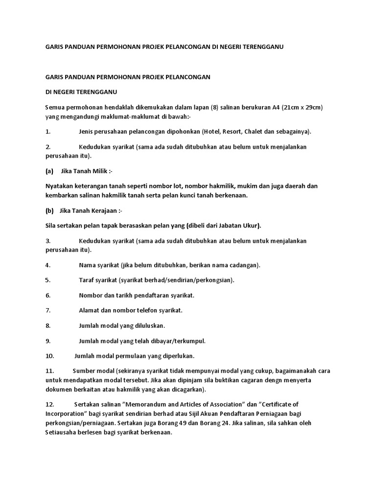 Garis Panduan Permohonan Projek Pelancongan Di Negeri Terengganu Pdf