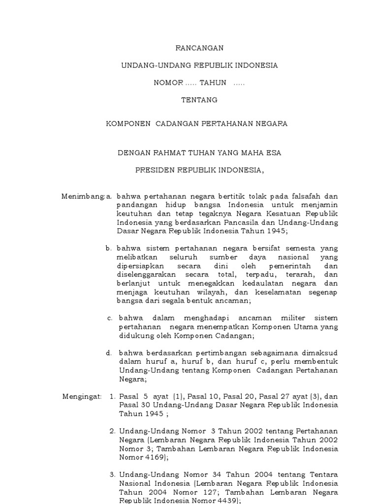 Ruu Ruu Tentang Komponen Cadangan Pertahanan Negara